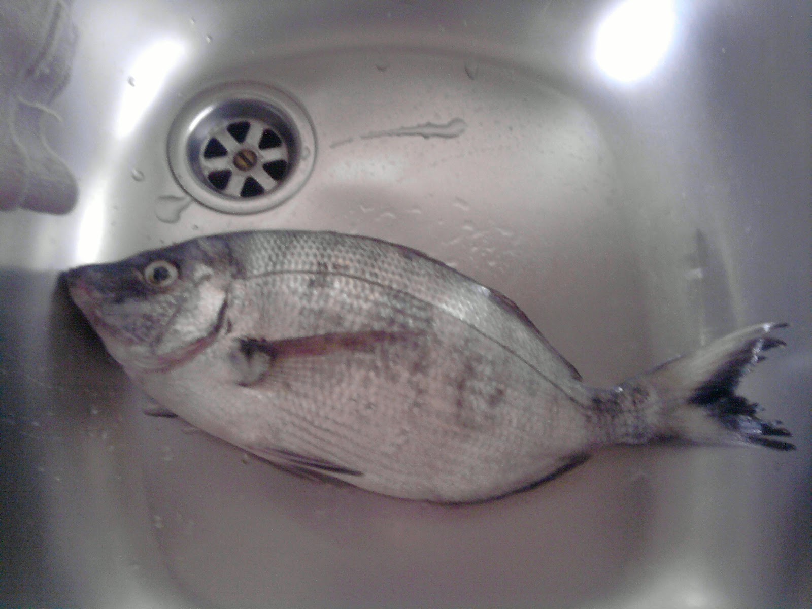 In basso una foto di un bel sarago di circa mezzo chilo, pescato con la bolognese utilizzando i bigattini come esca.