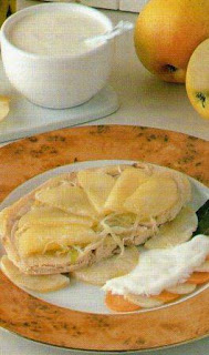 Quando il pesce sarà cotto prendendola con una paletta, estraete ogni fetta dalla teglia(con tutte le mele sotto e soprastanti) e disponetela nel piatto di ciascun commensale, al lato del contorno già preparato.
