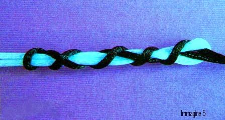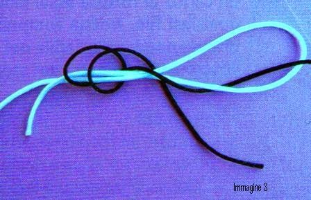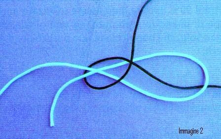 Con il filo del diametro più grande formiamo un asola, dove faremo passare il capo del filo di diametro inferiore.